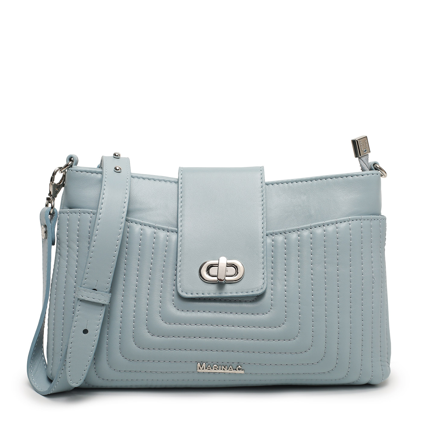 Сумка через плечо Marina Creazioni TRP217 760 7067_cielo_pc - 2000558770194 голубой натуральная кожа 25,5 x 17 x 6 Цена 9990 руб. купить в интернет-магазине PanChemodan.ru в Москве