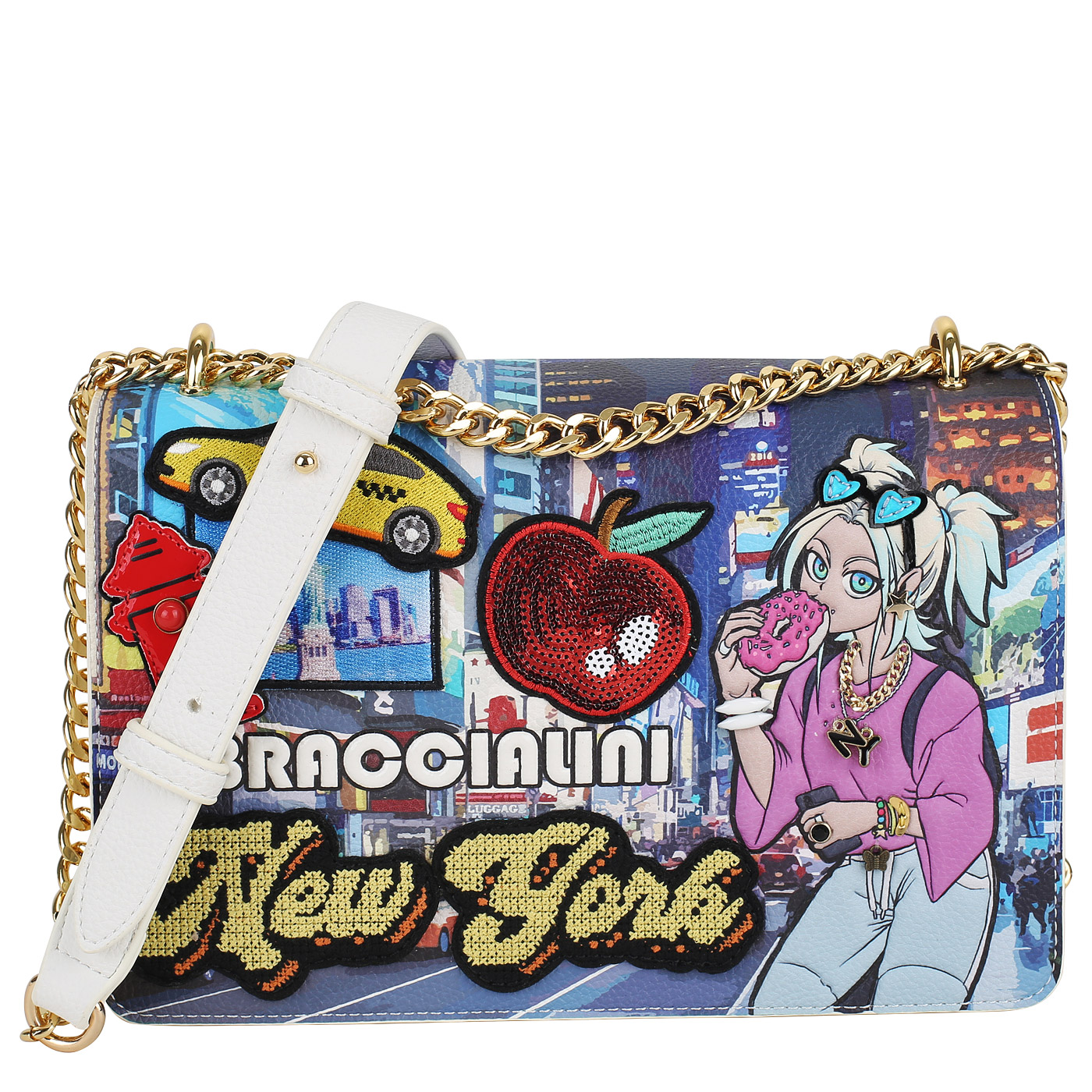 Сумка через плечо с цепочкой Braccialini Cartoline B17625-YY_unico - 2000558599047 мульти полиэстер, полиуретан 26 x 17 x 10 Цена 20340 руб. купить в интернет-магазине PanChemodan.ru в Уфе