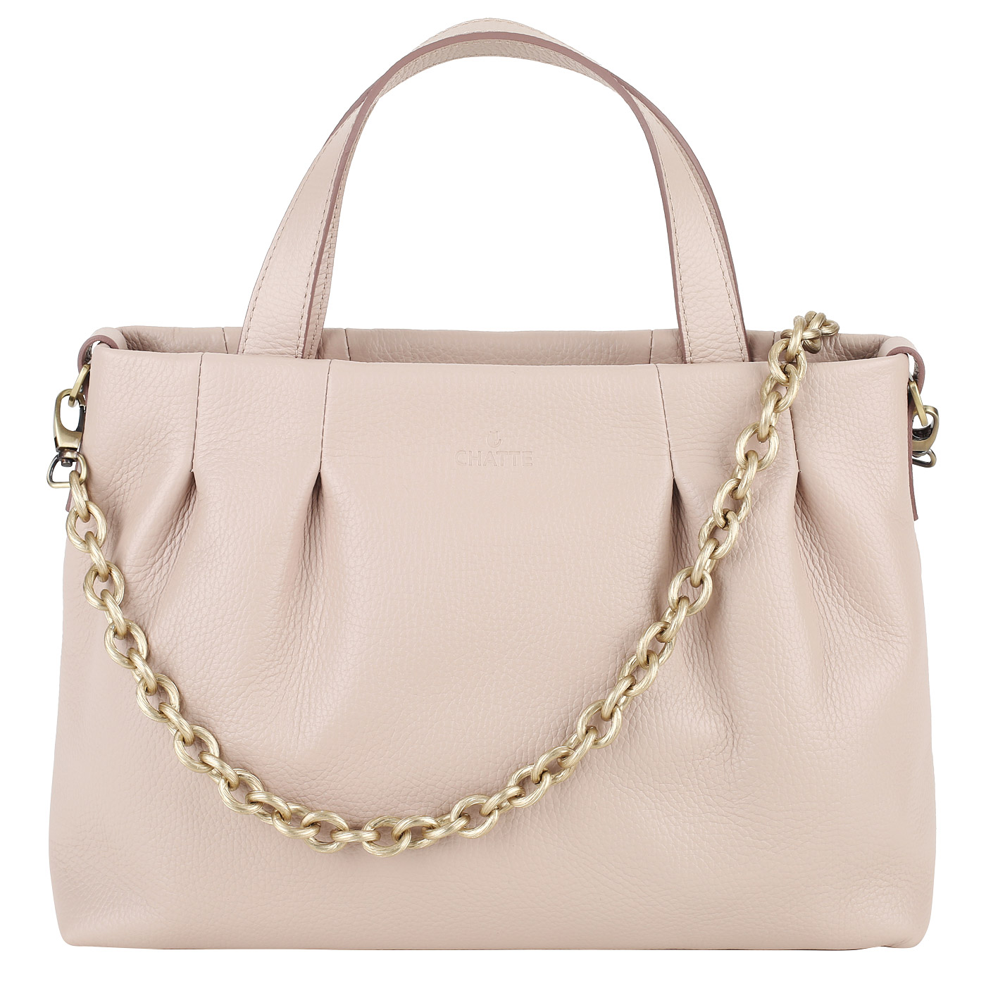 Кожаная сумка с цепочкой Chatte Marseille DB90374_powder pink - 2000558381000 розовый натуральная кожа 36,5 x 24 x 12 Цена 9590 руб. купить в интернет-магазине PanChemodan.ru в Уфе