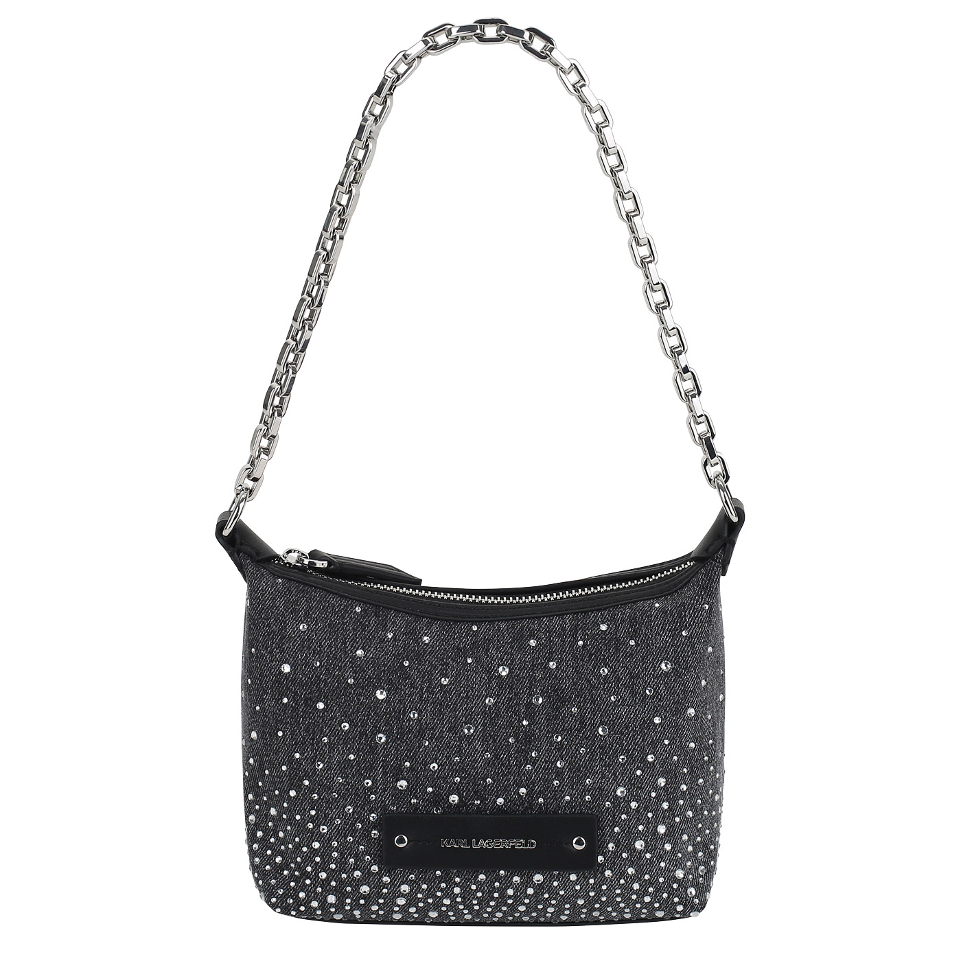 Сумка с ручкой-цепью Karl Lagerfeld Evening 240W3025/319_pc - 2000558646543 серый хлопок, полиуретан 18,5 x 12,5 x 8,5 Цена 24980 руб. купить в интернет-магазине PanChemodan.ru в Омске